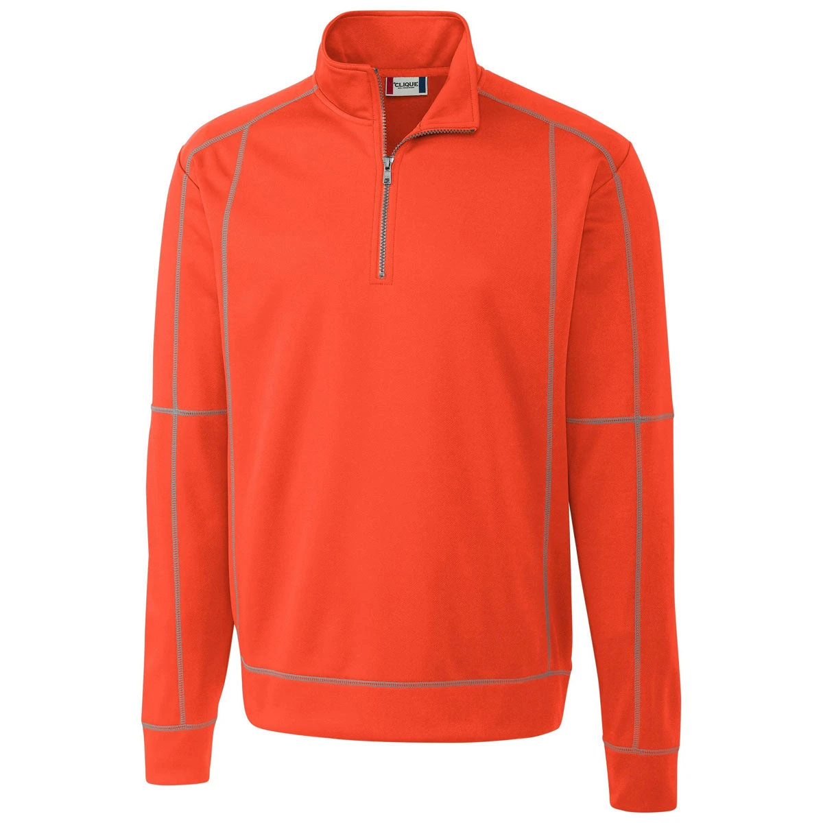 Put on company apparel for all social occasions by ordering the custom logoed Clique Men’s Blood Orange Helsa Half Zip. Soft fleece lining feels smooth on the body and the exterior presents an attractive shiny appearance that gets you noticed at business seminars and conventions. Attach your corporate logo on the embroidery area to turn the attention into lifelong customers of your business. Moisture wicking technology ensures you remain comfortably dry throughout a daylong company sponsored golf tournament. Mock style neck complements the design of the smooth moving half zipper. Contrast stitching resists rips and tears to deliver years of high fashion performance.