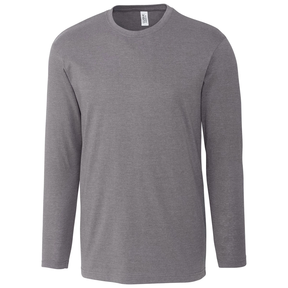 Wear the versatile Clique Men’s Grey Heather Long Sleeve Phoenix Tee as the middle layer of winter apparel or as the only layer you wear backpacking through the wilderness. The smooth feeling tee traps body heat to deliver optimal comfort on bone chilling days. One-hundred percent cotton not only feels super soft, the fabric also resists rips and tears to get you through several winters. Remove the tear away tag and utilize the empty space to screen print a custom logo that promotes your company. Open sleeves and rib knit neck trim accentuate an already visually appealing look.
