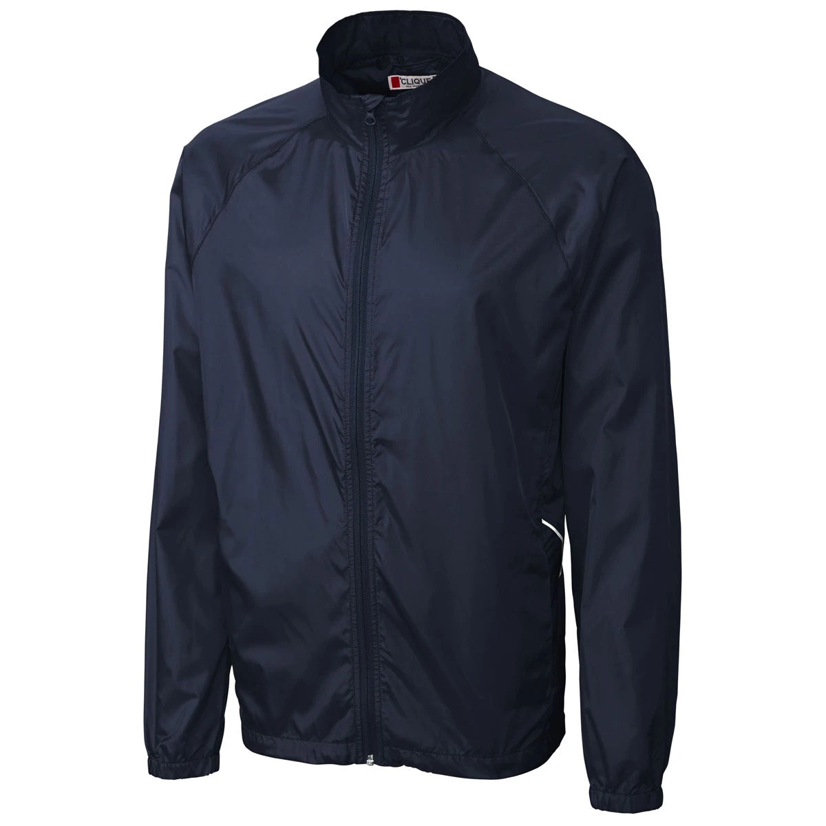 Do not allow Mother Nature to hamper your active lifestyle by wearing the custom logoed Clique Men’s Navy Active Full Zip Jacket. Designed to resist wind and rain, the lightweight 100% polyester shell fabric also resists rips and tears to give you go to company apparel for handing out to participants at the next corporate sponsored golf tournament. Mock neck includes a chin guard to help you achieve the optimal fit. Elastic cuffs provide plenty of wriggle room for the arms to extend and generate powerful golfing backswings. Attach a custom logo on the full zip jacket to generate buzz for your company at civic events.