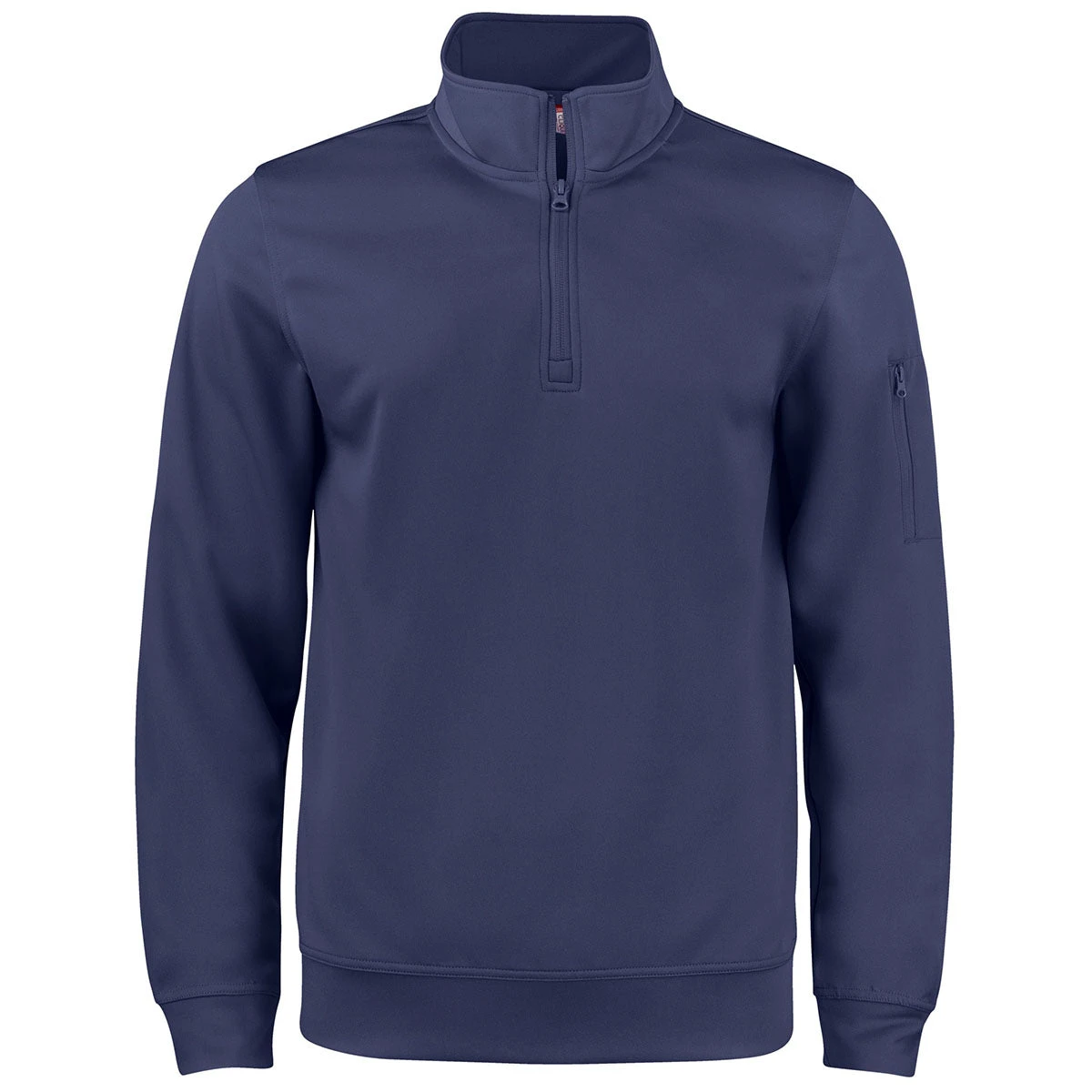 Clique Men’s Navy Lift Performance Quarter Zip with a custom logo is an easy to wear, eco-friendly pullover that is versatile and comfortable. The long sleeve quarter zip is easy to layer over work clothes when heading to work or run errands. Choose a company logo and add this quarter zip to your logoed apparel line at a gym, health club, or country club for a warm option that is fun to wear. Order yours today.