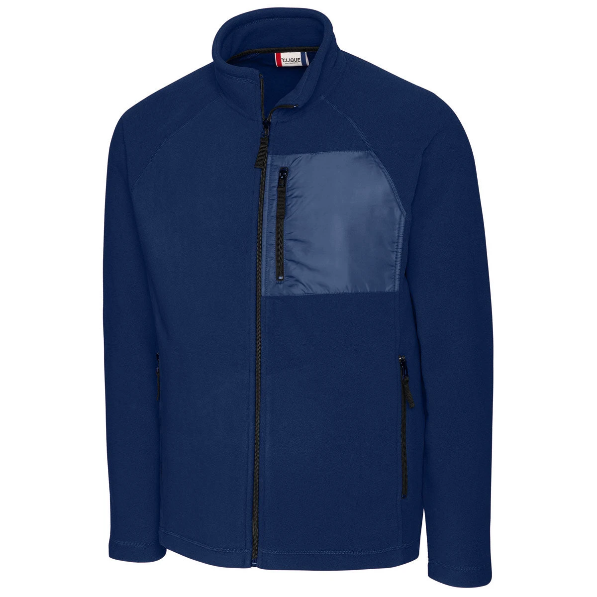 With a contrasting colored patch located on the left side of the Clique Men’s Navy Summit Microfleece Hybrid Full Zip, you can expect professional peers to compliment your choice of company apparel at the next industry trade show. Make sure to attach your company logo on the right side of the chest for expanding the power of your unique brand. The decorative patch on the right side of the chest includes a zippered pocket where you gain quick access to your cell phone. Raglan sleeves turn the full zip jacket into outerwear that is ideal for active professionals.