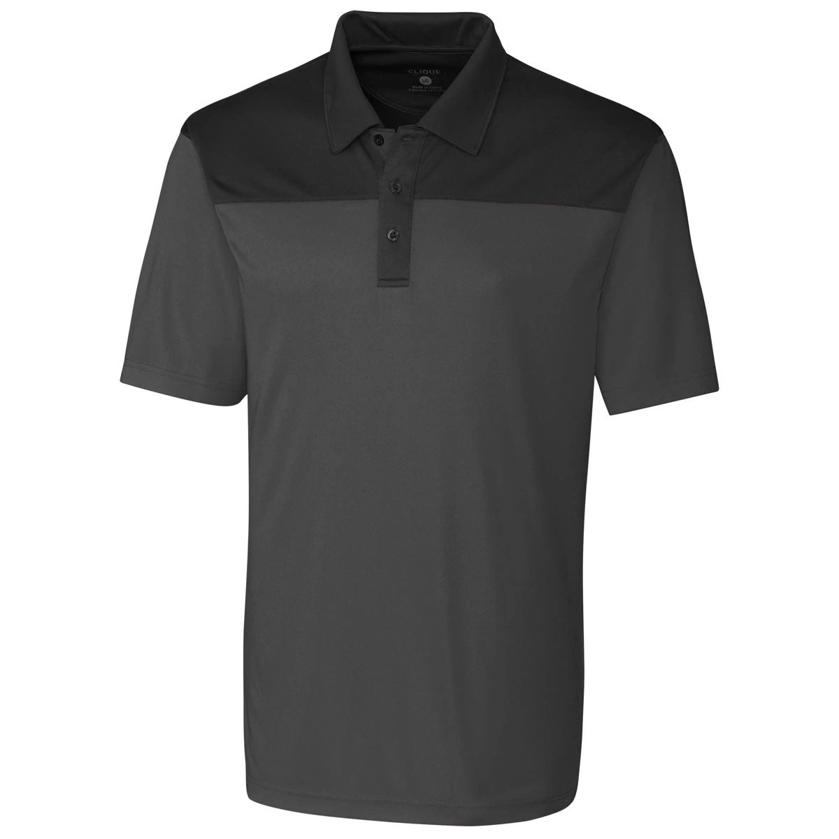 Two contrasting colors work brilliantly for the custom logoed Clique Men’s Titan/Black Parma Colorblock Polo. As one of the most popular golf shirts in the Clique line of company apparel, the versatile polo is also appropriate for wearing at business seminars and conferences. Remember to add your company logo on the embroidery area to take advantage of the attention paid to the polo by your professional peers. Cover stitch detail enhances the aesthetic appeal of the polo, while ensuring the short sleeve shirt does not fray because of frequent use. The 100% polyester fabric resists rips and tears to look as fresh today as it looked the first time you put the polo on.