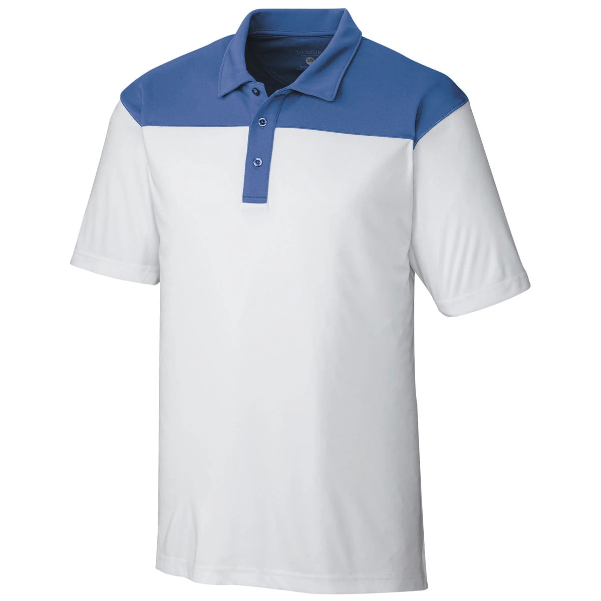 Two contrasting colors work brilliantly for the custom logoed Clique Men’s White/Sea Blue Parma Colorblock Polo. As one of the most popular golf shirts in the Clique line of company apparel, the versatile polo is also appropriate for wearing at business seminars and conferences. Remember to add your company logo on the embroidery area to take advantage of the attention paid to the polo by your professional peers. Cover stitch detail enhances the aesthetic appeal of the polo, while ensuring the short sleeve shirt does not fray because of frequent use. The 100% polyester fabric resists rips and tears to look as fresh today as it looked the first time you put the polo on.