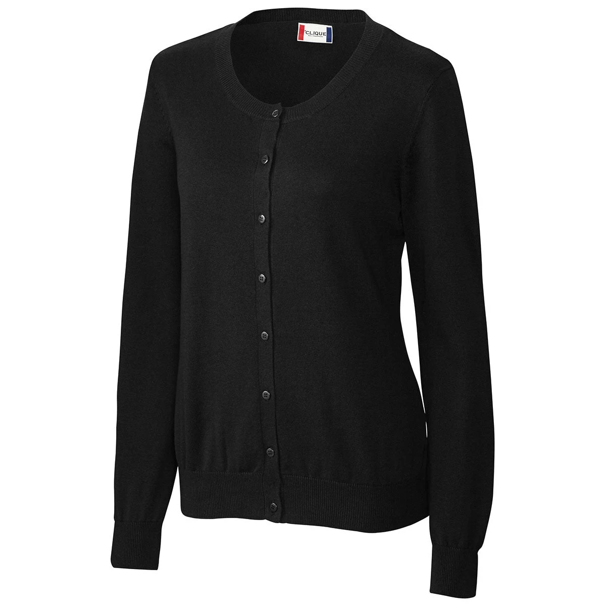 The Clique Women’s Black Imatra Cardigan Sweater is a stylish fashion option that offers comfort, too. With a custom logo affixed to the front, you can easily advertise your company name. Available in pleasing color tones, you really can’t go wrong with any color you choose. Features of this cardigan sweater include a 100% cotton material, full button front closure, jewel neckline, 12-gauge jersey stitch, and jersey self-trim neck. This product makes an excellent corporate apparel gift for a wide array of company-sponsored events. It’s also an excellent employee apparel item.