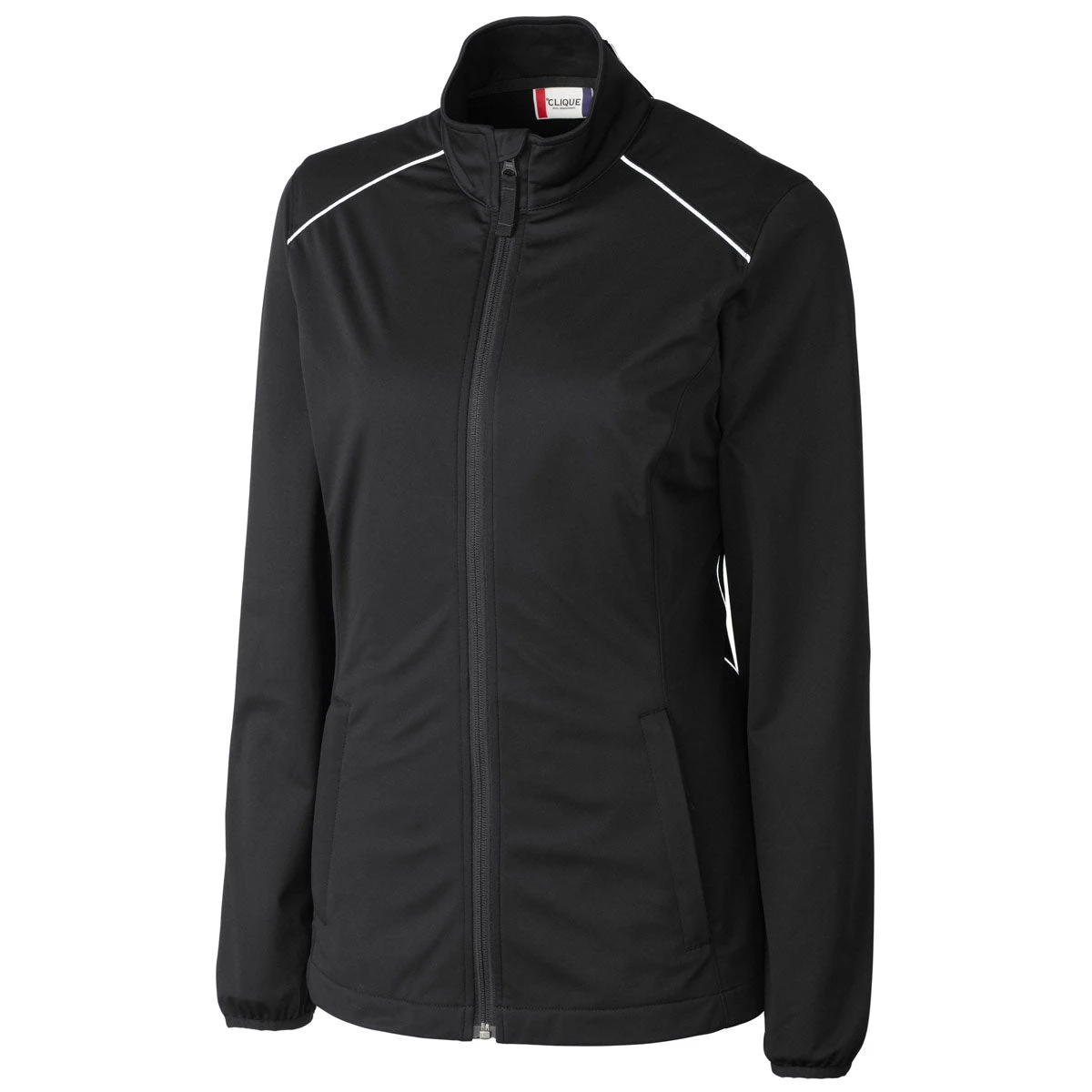 Take on Mother Nature with style by wearing the chic Clique Women’s Black Kalmar Light Softshell. The 100% polyester bonded softshell fabric withstands the punishment delivered by frequent use in outdoor recreational settings. Reflective piping details make the softshell jacket ideal for wearing at night when you jog or ride a bicycle. The locker loop offers a convenient way to hang the waterproof jacket and not have to worry about picking the softshell off a dirty floor. Add a custom logo on the large embroidery area to achieve greater awareness for your company at professional networking events.