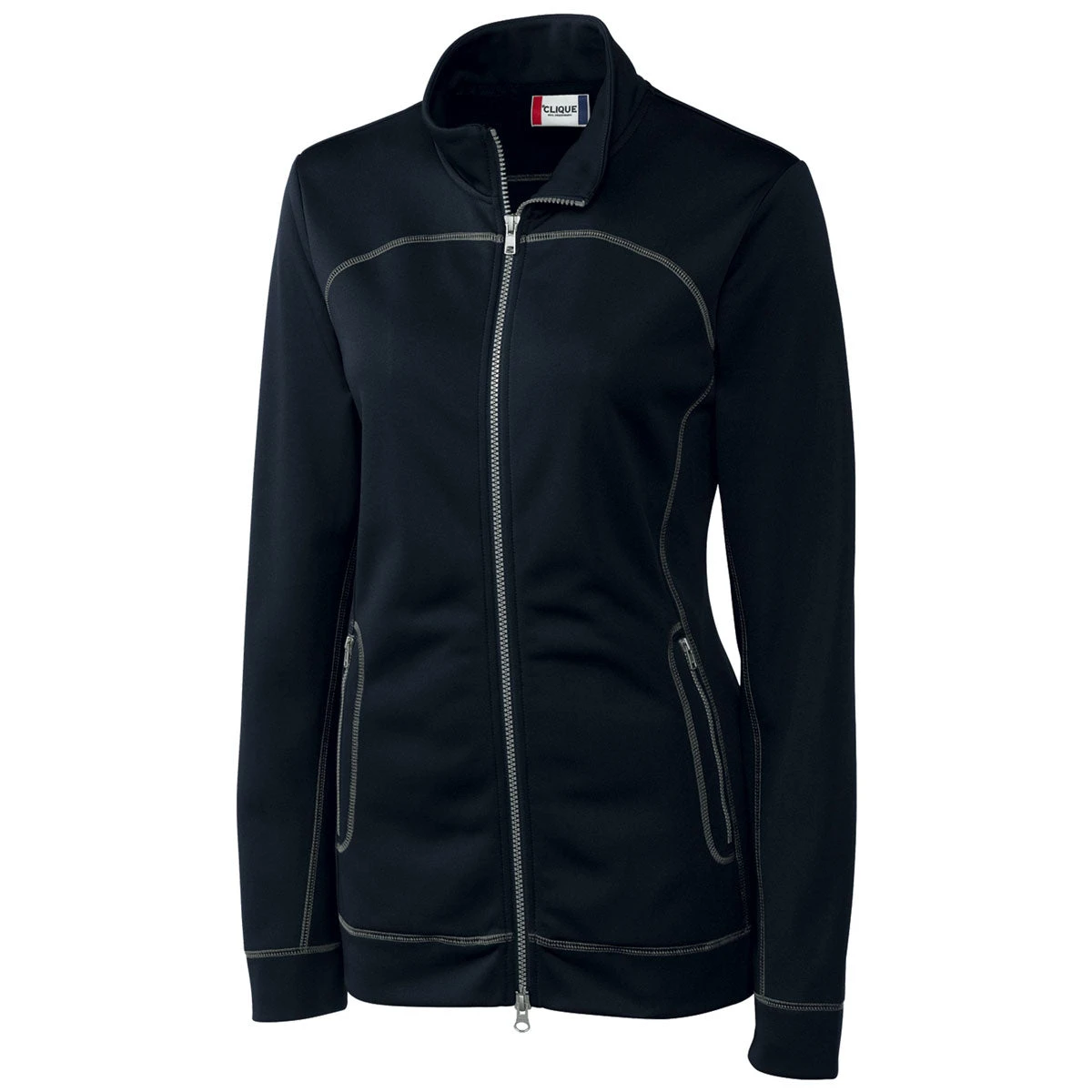 Change how professional peers view company apparel by ordering the custom logoed Clique Women’s Dark Navy Helsa Full Zip for the female members of your hard charging team. The versatile jacket features a full zipper that runs up to the attractive mock neck. Wear the full zip on the golf course during a corporate sponsored golf tournament and bring it along on the next business trip to an industry convention. Attach your corporate logo on the full zip jacket to boost your company’s image in the community. Unique piecing details and covered stitched frame zippered pockets seal the upscale design deal for the full zip jacket.