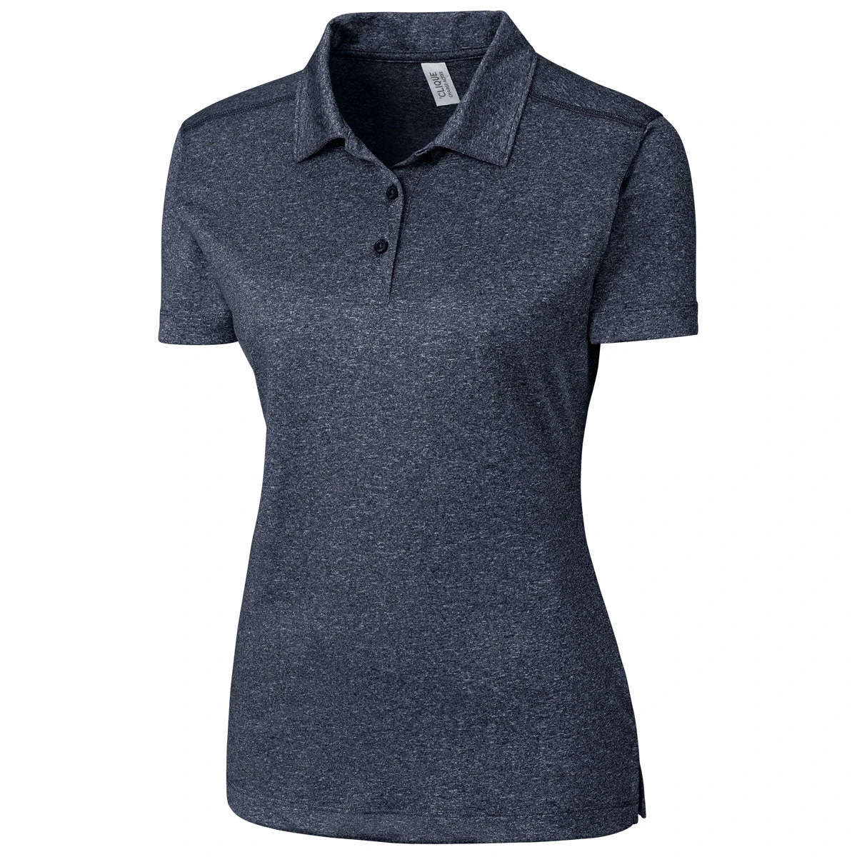 Forward-thinking brands will definitely want to outfit their team in the Clique Women’s Navy Heather Charge Active Short Sleeve Polo as soon as possible. Available in eye-catching color options that feature a unique print, it will make your company or team’s custom logo look better than ever before. This cool, contemporary garment maintains a classic sense of professionalism, making it perfect for brands who are looking to appeal to young professionals. A feminine fit also means that the women on your team will look and feel confident whenever they are on the clock.