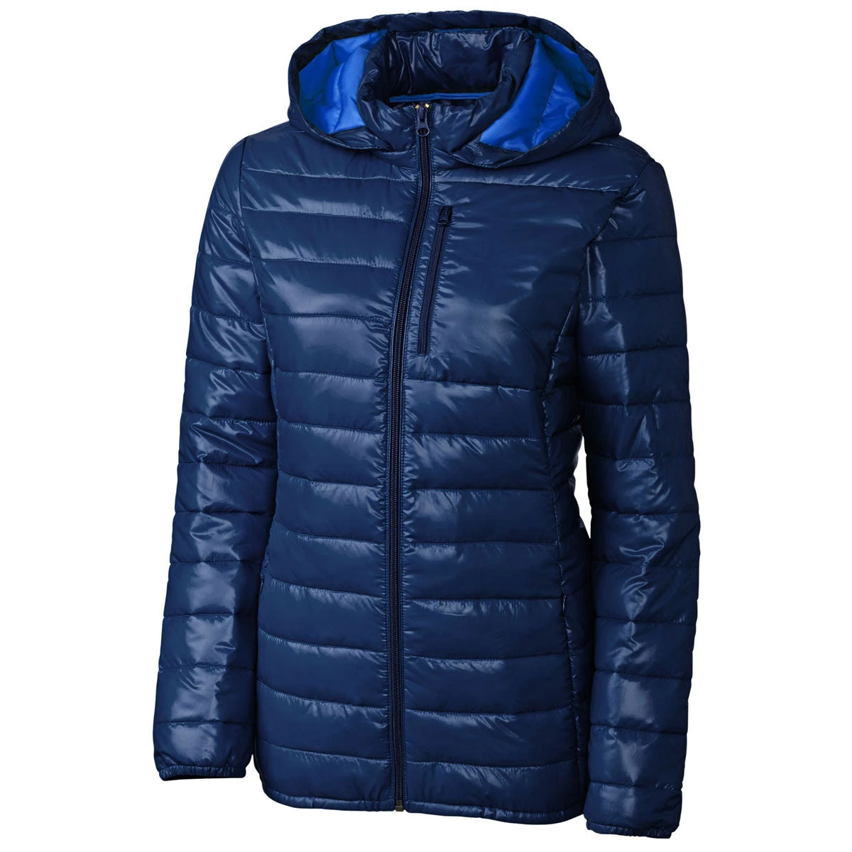 With a hood that features design enhancement options, the custom logoed Clique Women’s Navy/Royal Blue Stora Jacket protects the most vulnerable part of the body against frigid temperatures. Wind and water resistant plain weave fabric makes the jacket ideal for outdoor enthusiasts that love to brave the worst weather. Rugged polyester keeps the fabric intact for years to come. Attach your company logo to elevate your brand at industry trade shows. Elastic hem and cuffs increase mobility to help you work on difficult outdoor home improvement projects. Two front pockets provide quick access to electronic devices.