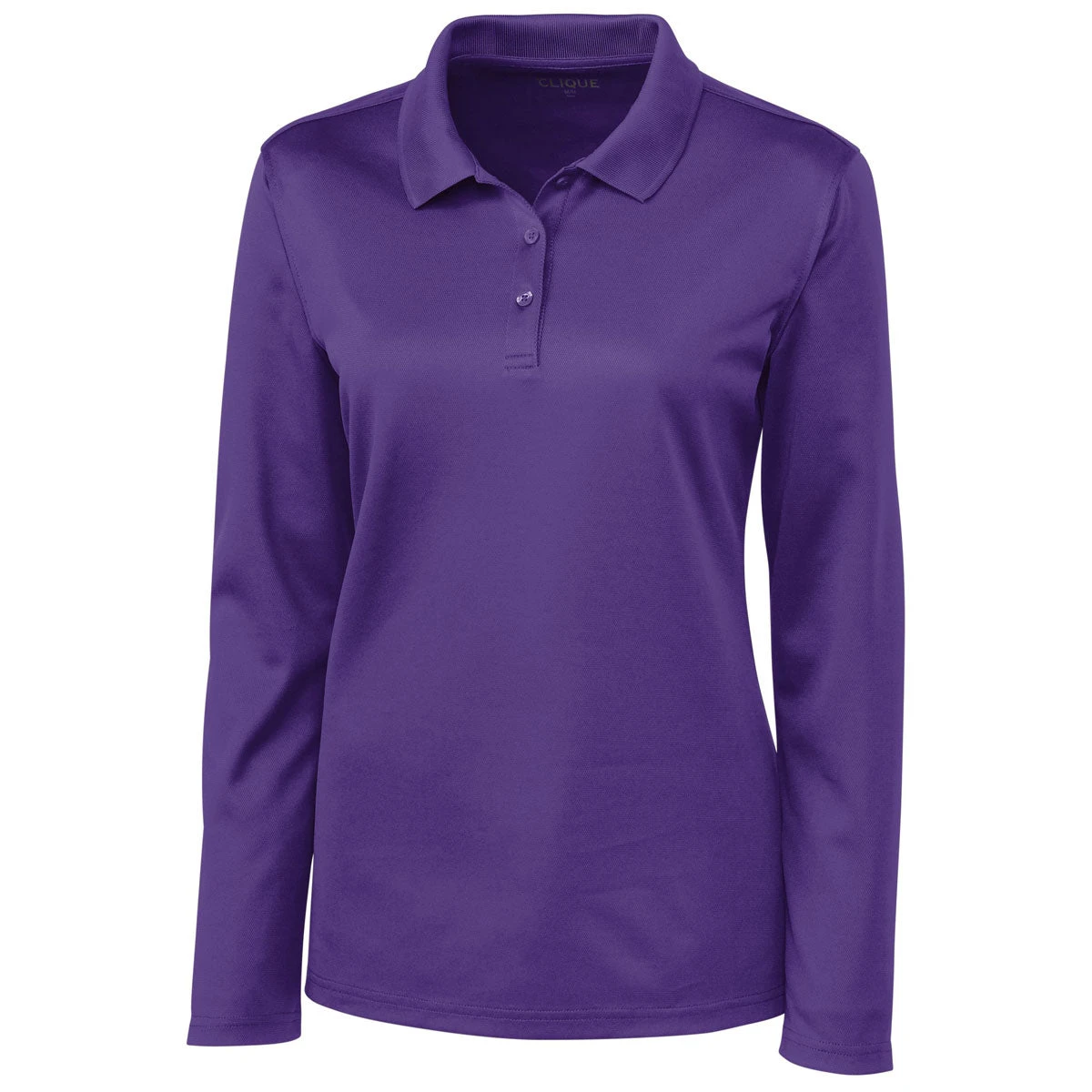 Usher in a new era of sleek women’s apparel by ordering the Clique Women’s Royal Purple Long Sleeve Spin Pique Polo. The long sleeve shirt is perfect as the outer layer of a golf fashion ensemble. You can also wear the body heat trapping pique polo under a plush sweater. Open the rib knit collar to create an upscale look. Enjoy a long lasting polo that contains 100% rip and tear resistant spin-dyed polyester pique. The full taped neck seam prevents the fabric from fraying because of frequent use. Attach a custom logo on the large area where you tore off the label.